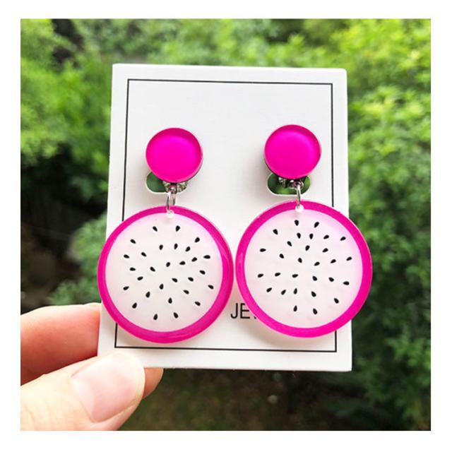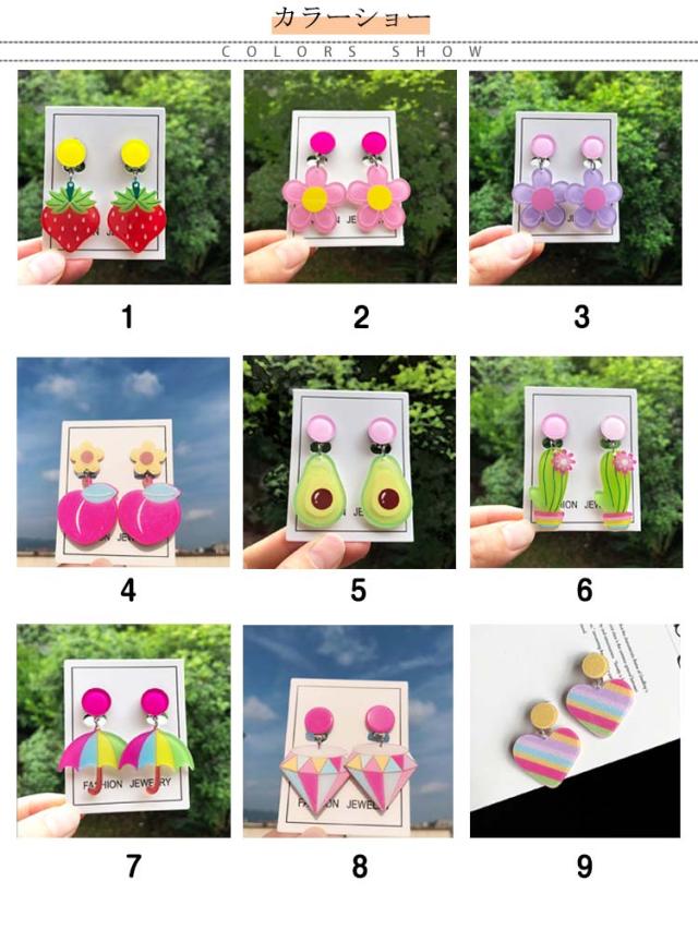 イヤリング イヤークリップ フルーツイヤリング 耳に挟むタイプ 揺れる 果物イヤークリップ 大ぶり アクセサリー レディース キッズ 子供用 イヤリング おしゃれ 可愛い スイカ 桃 カクタス キウイ ピタヤ オレンジ いちご レモン 女の子 女性 プレゼント ギフト 送料無料