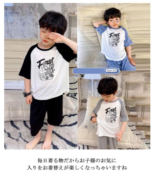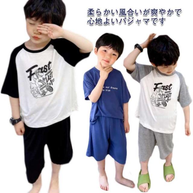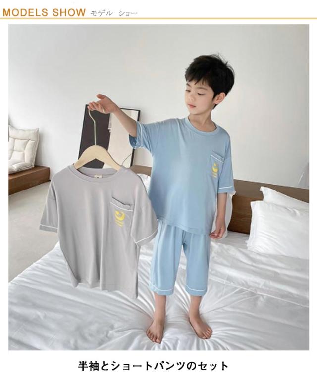 送料無料 子供パジャマ キッズ ジュニア 上下セット 男の子 女の子 ボーイズ ガールズ ベビー セットアップ 110 120 130 140 150 160 170 半袖 ゆったり ルームウェア 薄手 涼しい 可愛い おしゃれ ハープパンツ 短パン 部屋着 入園 入学 入園準備
