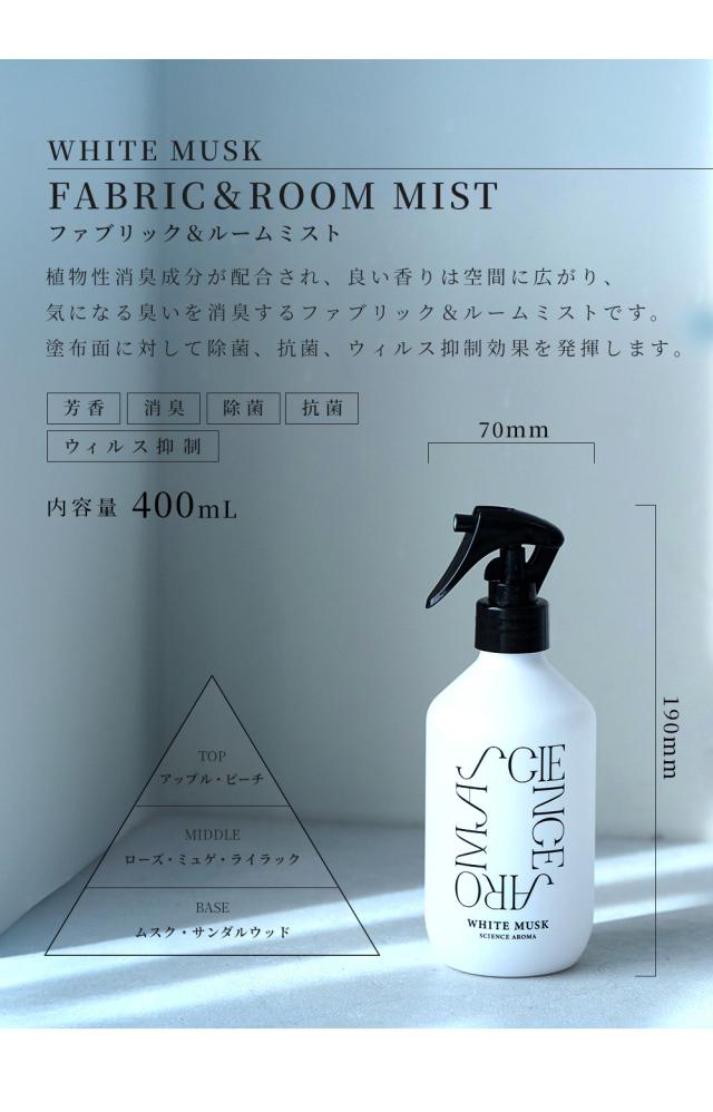 SCIENCE AROMA サイエンスアロマ ルームミスト 400ml ホワイトムスク リラックス 癒し ポジティブ 自律神経 ストレス 集中 瞑想 芳香 消臭 除菌 抗菌 ウィルス抑制 ギフト プレゼント 女性 男性 レディース メンズ ユニセックス