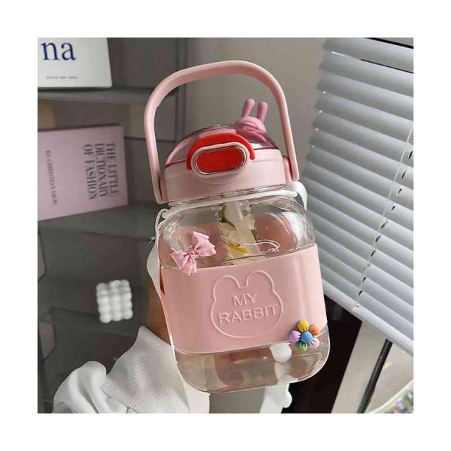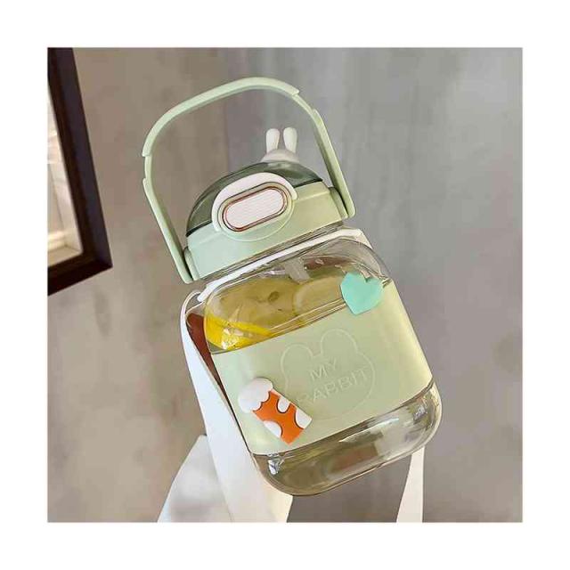 大容量 1400ml ストラップ付き 水筒 ストロー ボトル ウォーターボトル 直飲み 子供 大人兼用 キッズ 子ども こども ワンタッチ かわいい 首掛け ロック付き 持ち運び 軽い 漏れない スポーツボトル ドリンクボトル 通学 通勤 自転車 アウトドア