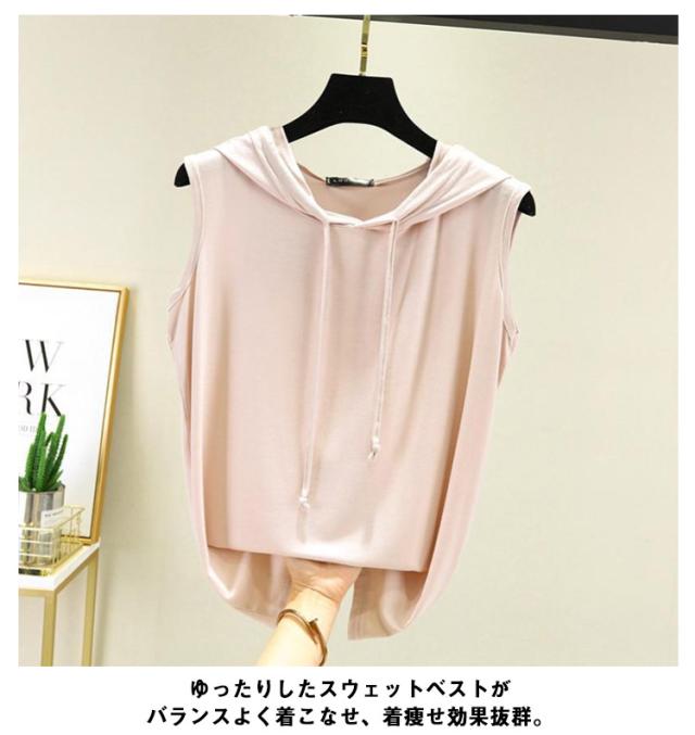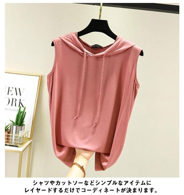 ベスト Tシャツ フード付き レディース トップス タンクトップ ノースリーブ 夏 袖なし メンズ ゆったり 薄手 大きいサイズ タンクトップ パーカー トレーニング スポーツ ベスト 袖なしパーカー 無地 おしゃれ トレーニング レイヤード 送料無料