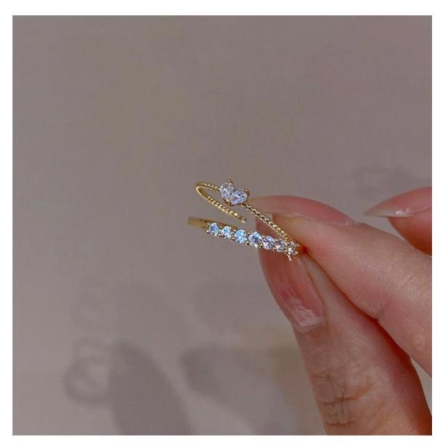 指輪 レディース ジルコニア リング フリーサイズ ゴールド プレゼント 女性 アクセサリー ハート 30代 40代 50代 60代 誕生日 ギフト