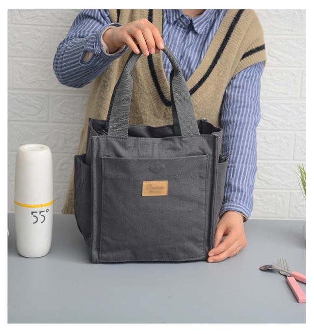| ポケットが充実したミニトートバッグが登場! しっかりとマチがあるので見た目によらず沢山入るのが魅力的。 長財布や、ポーチ、ランチボックスなどすっぽり入ります。 両サイドのポケットは大きめに作られれているので500mlのペットボトルや、水筒、折りたたみ傘などが入れられます。 通勤、通学やお出かけなどに使いやすいサイズ感なので、年齢問わず使えるバッグです。 | |