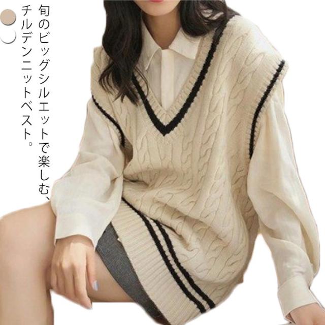 【送料無料】チルデンニットベスト レディース ニットベスト Vネック ライン入り ケーブル編み ニットセーター ノースリーブ トップス プルオーバー 秋服 秋物 オーバーサイズ ゆったり レイヤード 重ね着 おしゃれ