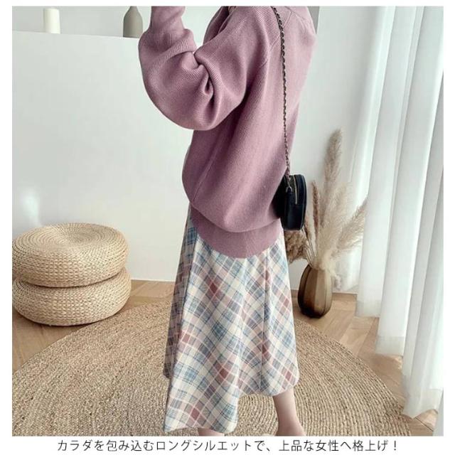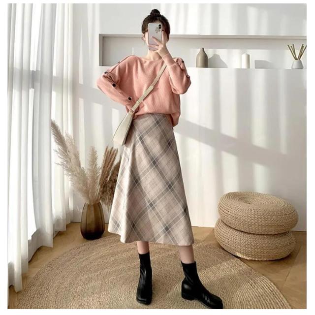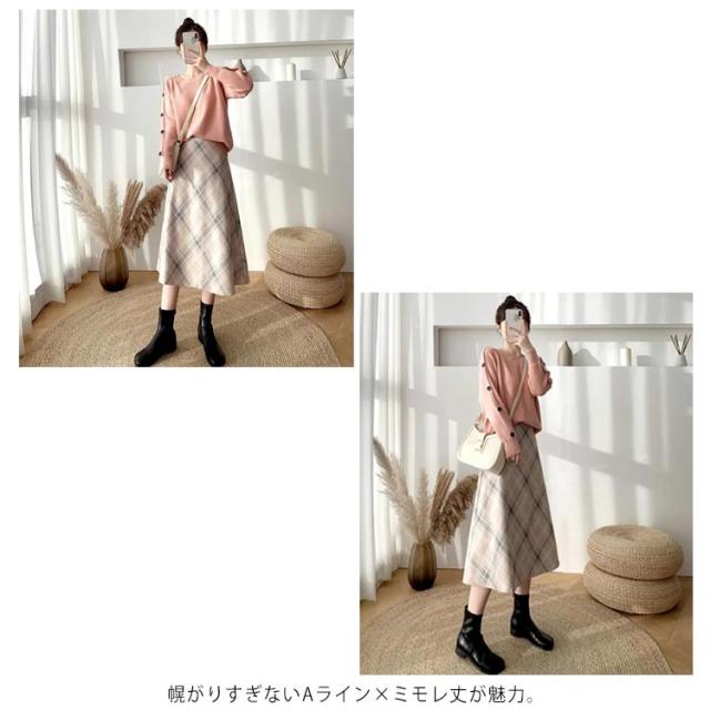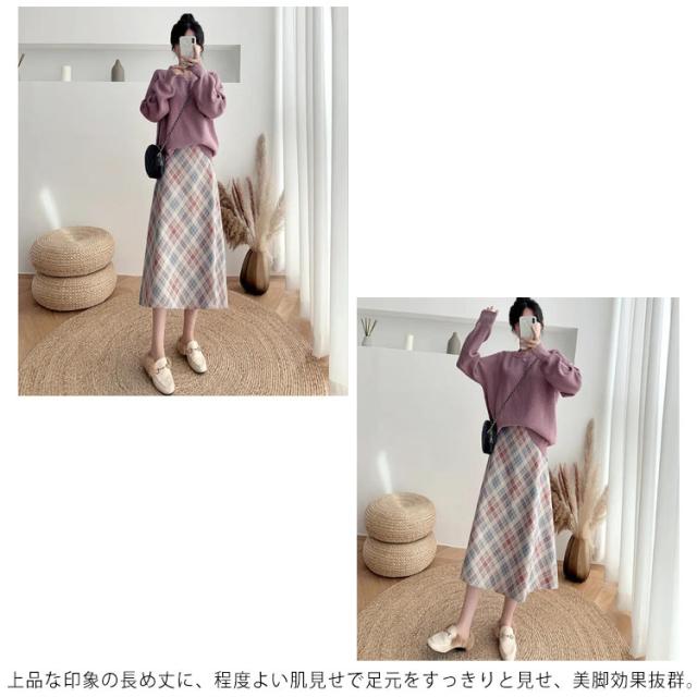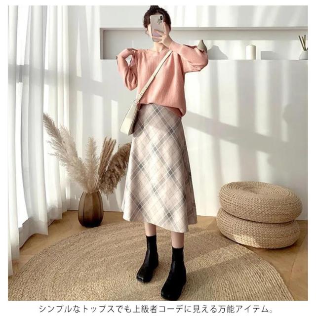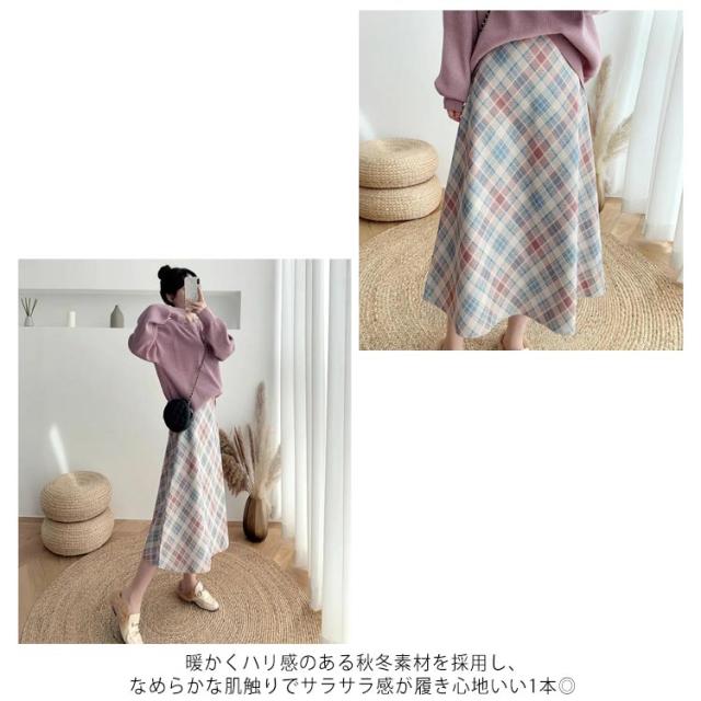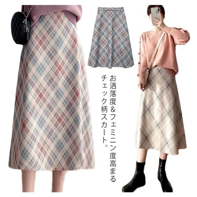 スカート 秋冬 ロングスカート Aラインスカート チェック柄スカート ロング ハイウエストスカート チェック ハイウエストスカート 膝下丈 ミモレ丈 体型カバー カジュアル 通勤 おしゃれ