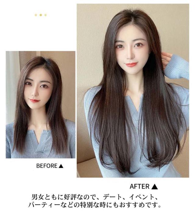 | クリップで留めるだけ!簡単だからこそイメチェンを楽しみたくなる♪ カール、ストレートの2タイプで様々なスタイルをお楽しみ頂けます。 クリップ部分がV字になっていて、自毛が短めでも馴染みやすい襟足ウィッグ。 男女ともに好評なので、デート、イベント、パーティーなどの特別な時にもおすすめです。 ヘアスタイルを変えたい方、ロングヘアにしたい方、ファッションとして楽しみたい方等、10代、20代、30代、40代の女性にぴったりです。 | |