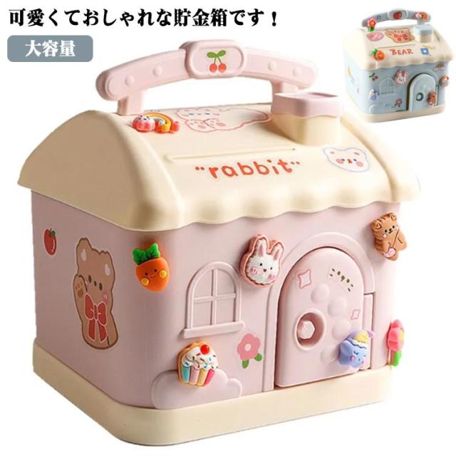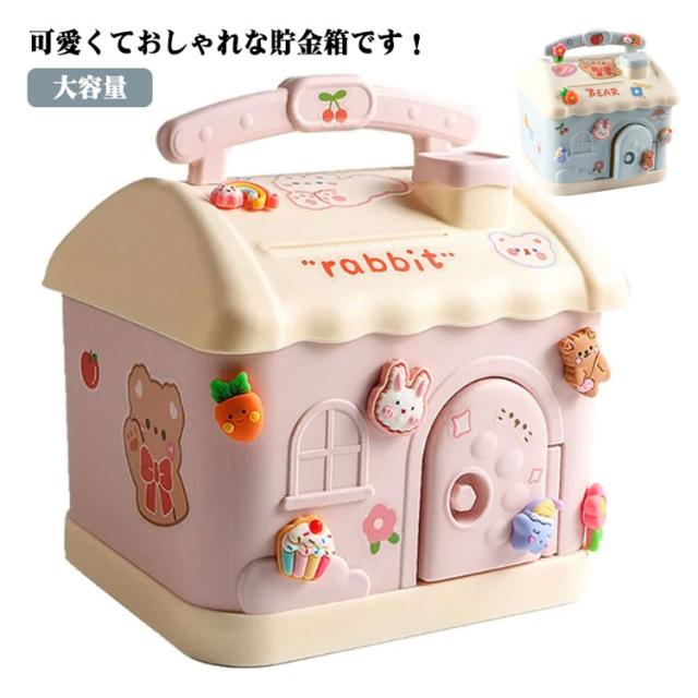 子供 貯金箱 可愛い お札 コイン 金庫 大容量 おもちゃ 小銭投入ボックス 紙幣 鍵付き 家型 お年玉 飾り付き 手提げ金庫 イベント 景品 雑貨 おもしろ 玩具 おこづかい 小学生 孫 低学年 クリスマス 誕生日 お祝い プレゼント