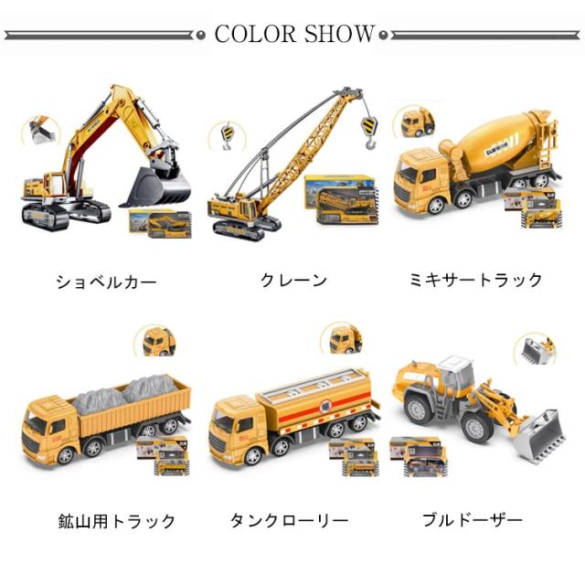 | ・子供に人気の建設車両・作業車両のおもちゃです。 ・働くクルマ、建設車両、工事車両は男の子が大好きの玩具ですので、クリスマスや誕生日プレゼントにお勧めです。 ・ショベルカー、フォークリフト、クレーン車、ミキサートラック、鉱山用トラック、ブルドーザー、ロードローラーなど用意しております。 ・ショベルカーのショベルやクレーン車のアーム部分など動くので、工事現場、工事車両好きの子供達は飽きずに楽しいです。 ・車は手で転がして遊べます。 ・簡単に分解・組み立てができます。 ・くるまのコレクションやインテリアにもおすすめです。 | |