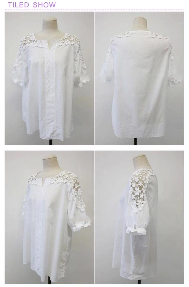 刺繍ブラウス 半袖 シャツ ブラウス 花柄 レース シャツブラウス 中袖 ゆるシャツ レディース キーネック ワイドネック ドルマンスリーブ シースル ブラウス