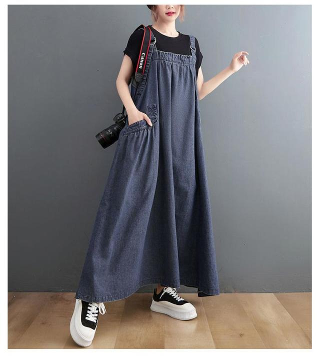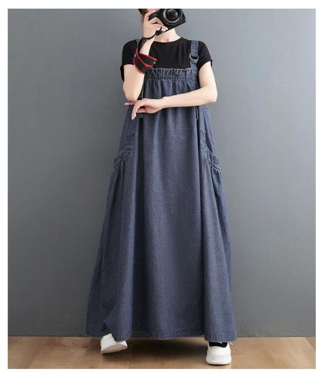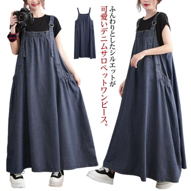 マキシワンピース オーバーサイズ 送料無料 サロペットワンピース レディース サロペット ロングワンピース オールインワン スカート デニムワンピース ロング ジャンパースカート デニム 無地 大きいサイズ ゆったり 体型カバー マキシ丈 ポケット