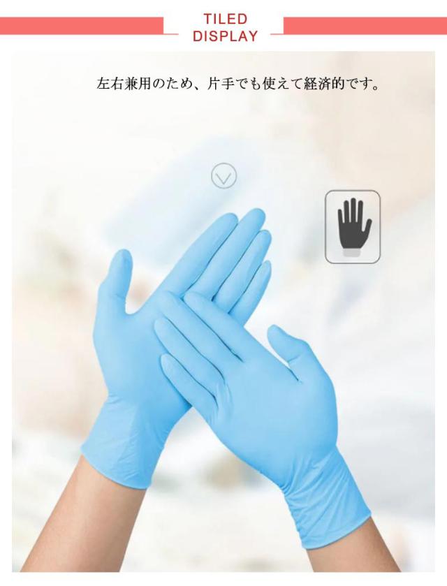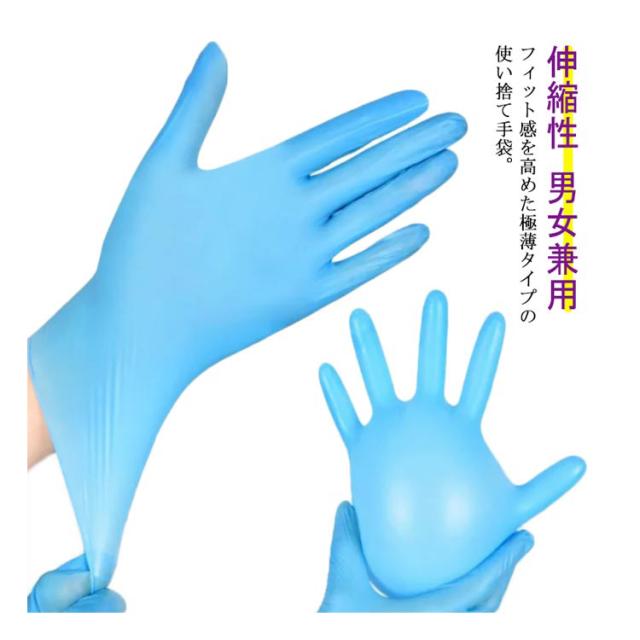 ニトリル手袋 100枚入り 使い捨て手袋 ブルー 食品 調理 粉なし 薄手 ニトリルグローブ 家庭用 調理用 美容 機器作業 業務用 キッチン 水回り 清掃 伸縮性 男女兼用 手荒れ防止 破れにくい ゴム手袋 左右兼用 送料無料