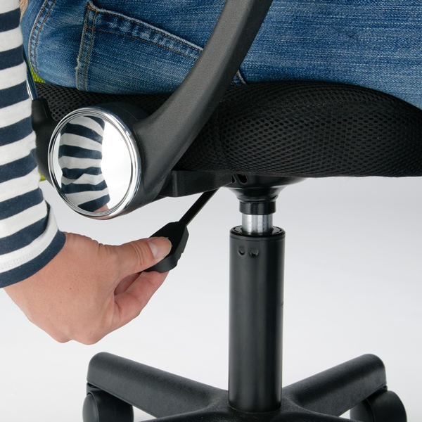 座面下のワンタッチレバーで、誰でも簡単にお好みの高さに調整可能(上下12cm昇降)。