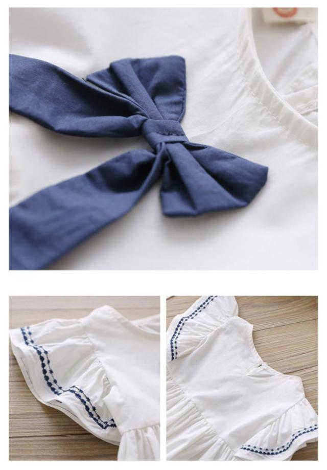 送料無料 ワンピース キッズ 子供服 女の子 90-130cm フリル袖 ノースリーブ セーラーカラー リボン 刺繍 ホワイト ネイビー ピンク かわいい おしゃれ 可愛い キュート 上品 清楚 キッズ服 ガールズ