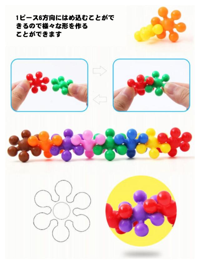 | 可愛いお花のブロック♪6方向に繋げられる新感覚ブロック♪400個入り 丸いお花のような形とカラフルなカラーがとても可愛い立体パズルです! 1ピース6方向にはめ込むことができるので様々な形を作ることができます。 つの角からつなぎ合わせるだけで、自由自在! 楽しく遊びながら、掴む力や握る力、想像力・創造力、集中力など、さまざまな力が身につきます。 | |