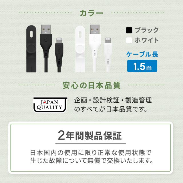 USB Type-A to Lightning エコナミクスケーブル 急速充電2.4A/データ転送 バイオマス素材使用 耐屈曲2万回以上