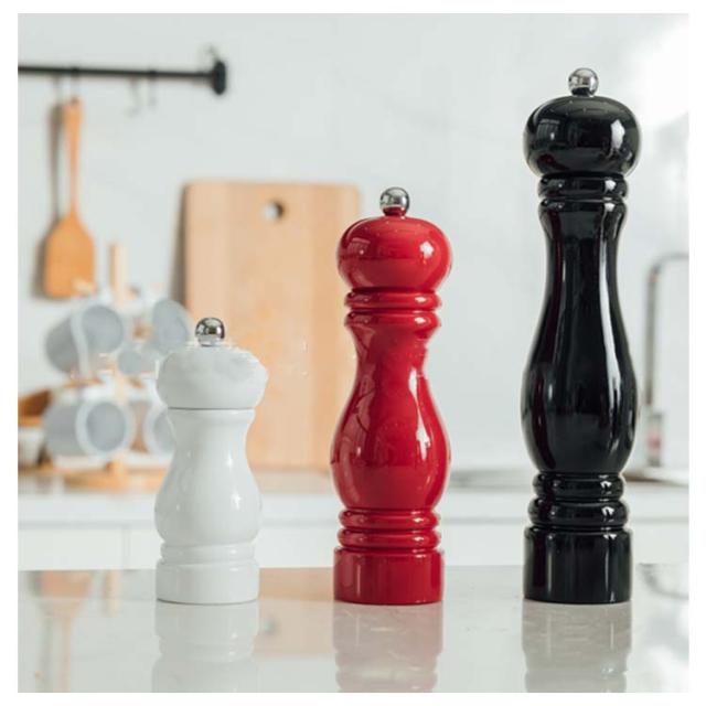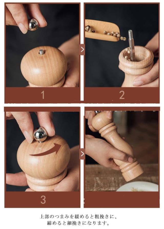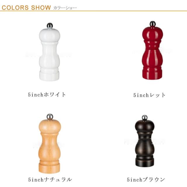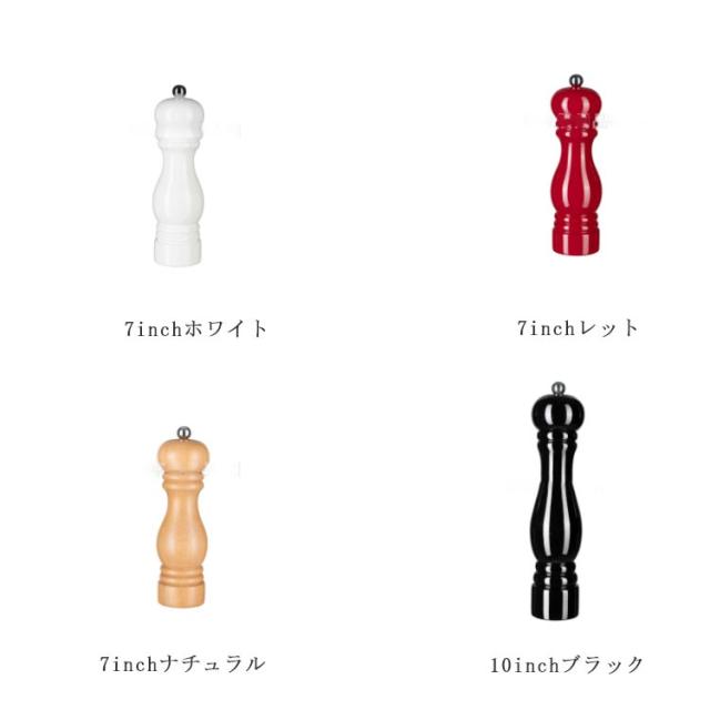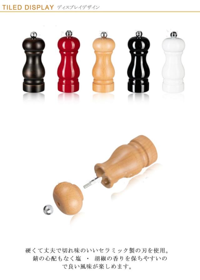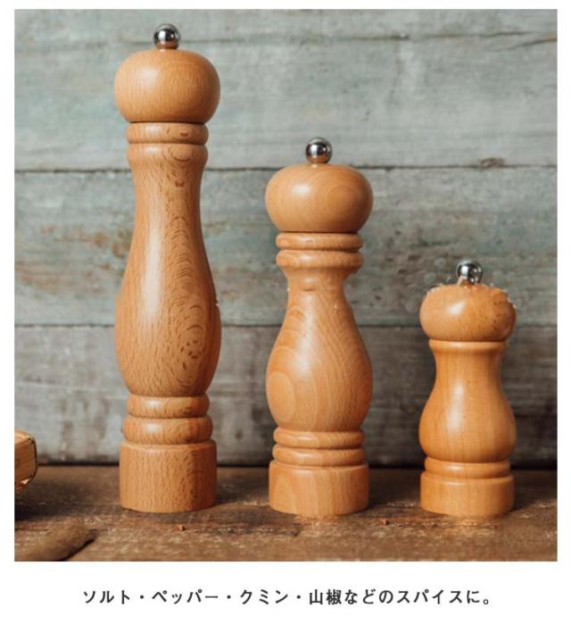 | 5inch / 7inch / 10inch 選べる高級感のある木製ミル ソルト・ペッパー・クミン・山椒などのスパイスに。 上部のつまみを緩めると粗挽きに、締めると細挽きになります。 硬くて丈夫で切れ味のいいセラミック製の刃を使用。 錆の心配もなく塩 ・ 胡椒の香りを保ちやすいので良い風味が楽しめます。 インテリアにも馴染みやすく、食卓をおしゃれな雰囲気にしてくれます。 | |