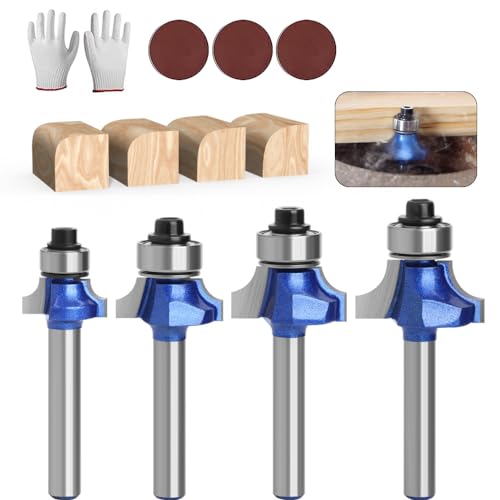 Breezliy 4本入 コロ付丸面ビット角面ルータービット ?径6mm 超硬トリマ ルータービット ルーター ベアリング 電動トリマービット DIY木