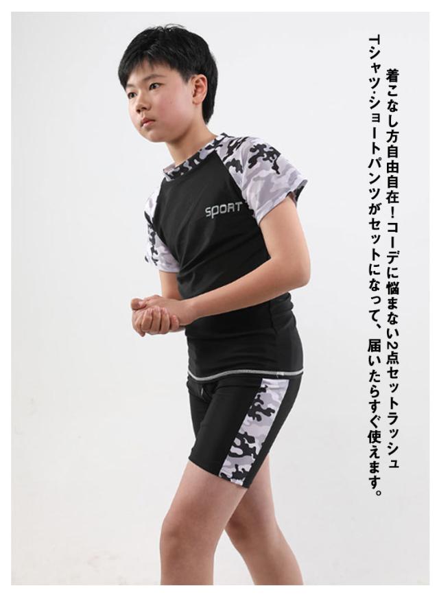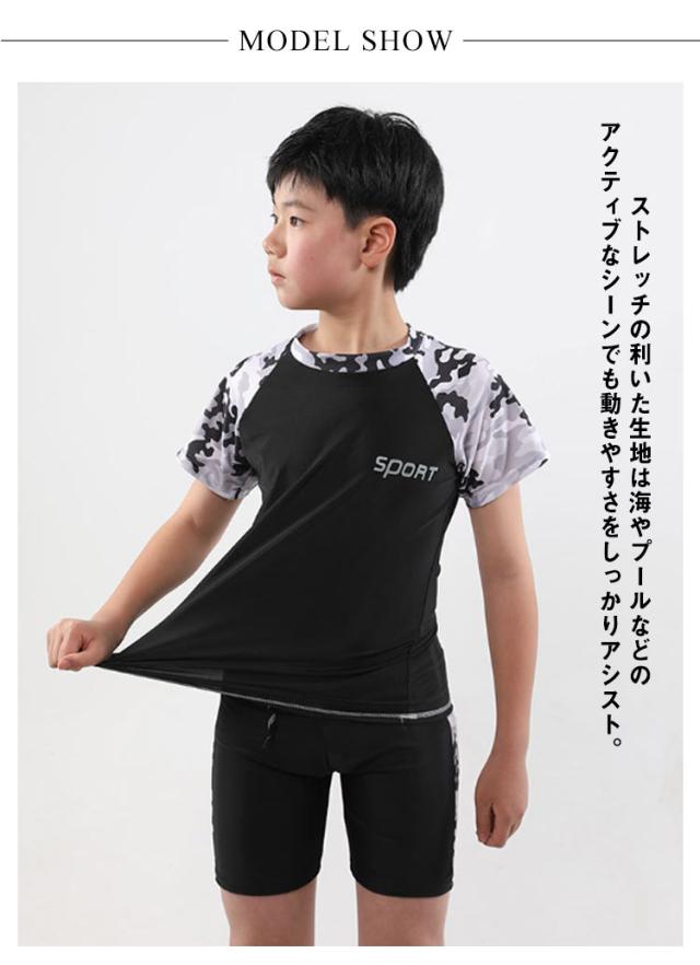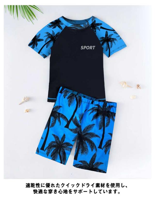 キッズ 水着 男の子 男子 セパレート 上下2点セット 半袖 ラッシュTシャツ ショートパンツ 水陸両用 水着 ラッシュガード 配色 大きいサイズ 120 130 140 150 160 170 cm 小学生 中学生 高校生 ジュニア プール 海 川 リゾート 水遊び ストレッチ