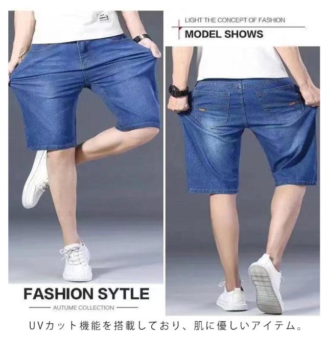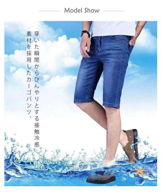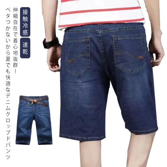 ハーフパンツ メンズ ひざ下 デニムパンツ クロップドパンツ 接触冷感 ショートパンツ デニム ボトムス 冷感 ストレッチ 7分丈 ジーンズ 短パン 半パンツ 五分丈 スポーツ 春夏 送料無料 ひんやり 涼しい 大きいサイズ カジュアル ストレッチ 薄手 速乾 お洒落 ゆったり