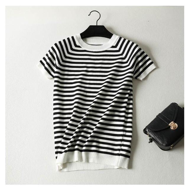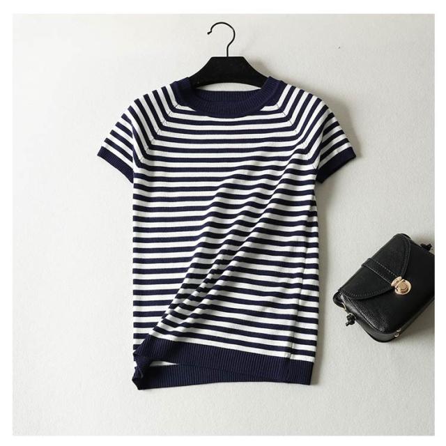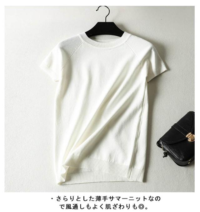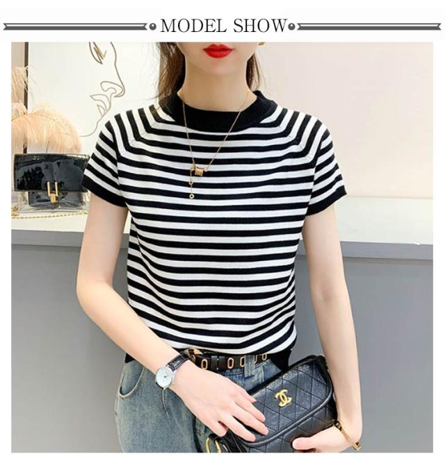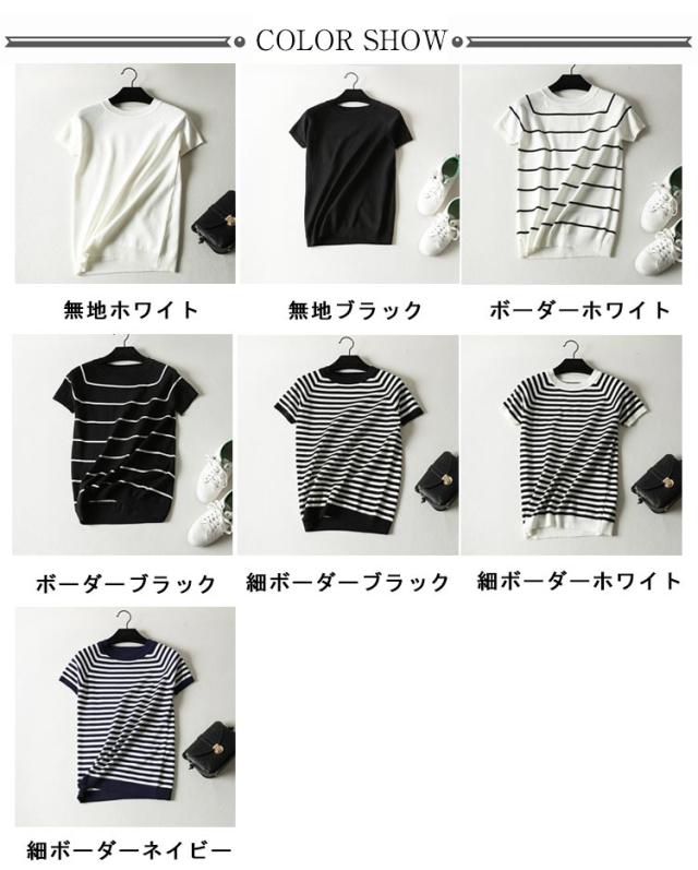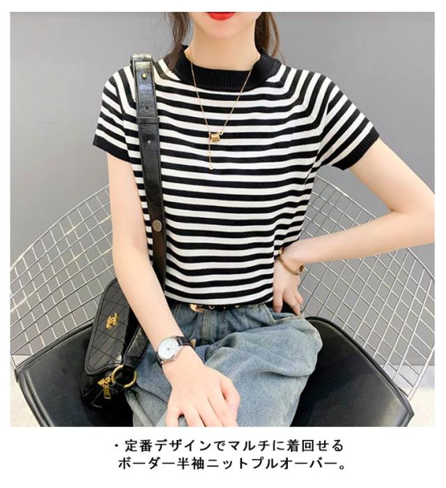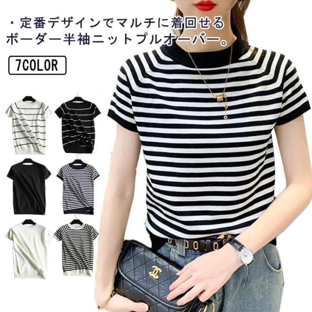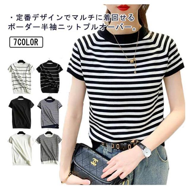 サマーニット Tシャツ 半袖 ボーダー レディース カットソー ニット セーター トップス カジュアル オフィス 女性 春夏 無地 ボーダー柄