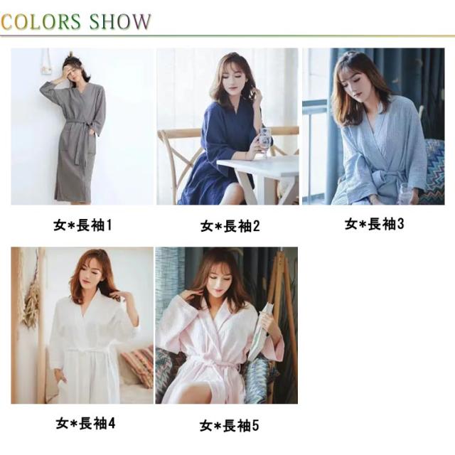 バスローブ レディース 薄手 長袖 膝丈 レディース 風呂 通気 温泉 ナイトガウン 長袖 半袖 寝巻き パジャマ 寝間着 カップル ホームウェア ワッフル生地 部屋着 ルームウェア ホテル M L XL 2XL