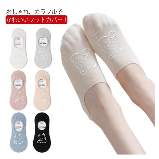 【6足セット】フットカバー クマ 靴下 ソックス 送料無料 スニーカーソックス ショート おしゃれ かわいい くつした 浅履き レディース 女性 婦人 可愛い シリコン滑り止め 通勤 通学 春夏