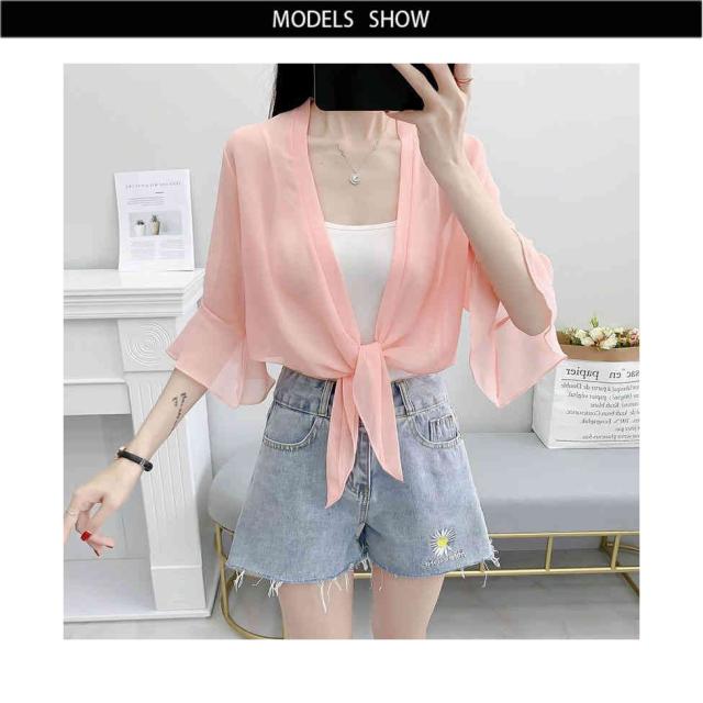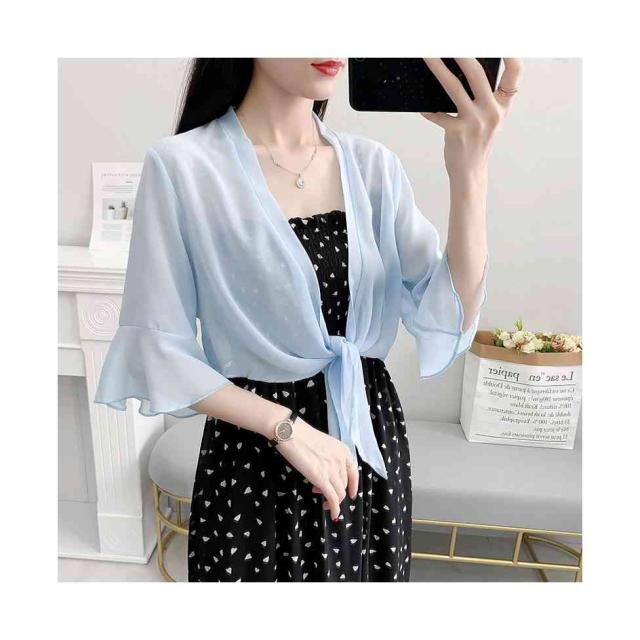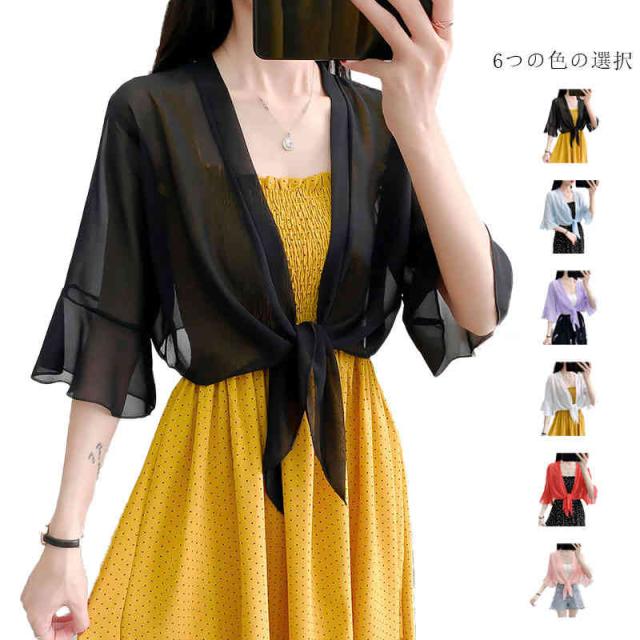 送料無料 カーディガン ボレロ レディース ショートカーディガン 冷感 前結び UVカット 冷房対策 UV対策 7分袖 袖フレア 夏 6色