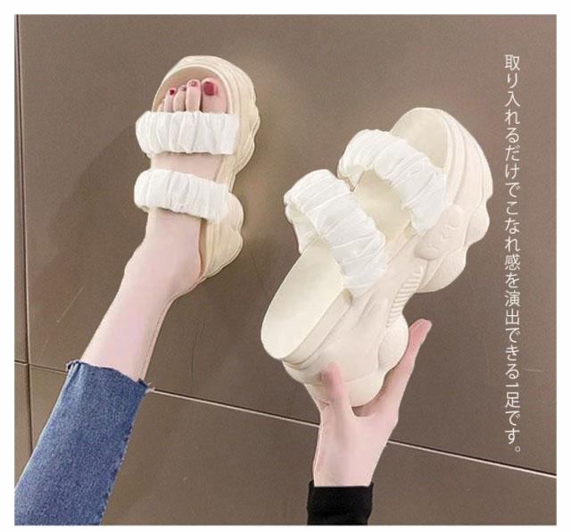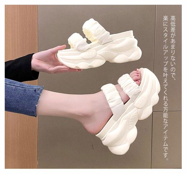 ミュール サンダル 歩きやすい 厚底サンダル ダブルベルト ギャザーベルト レディース スポーツサンダル 軽量 9cmヒール 滑りにくい かわいい おしゃれ カジュアル シンプル 夏 美脚 22.0-24.5cm