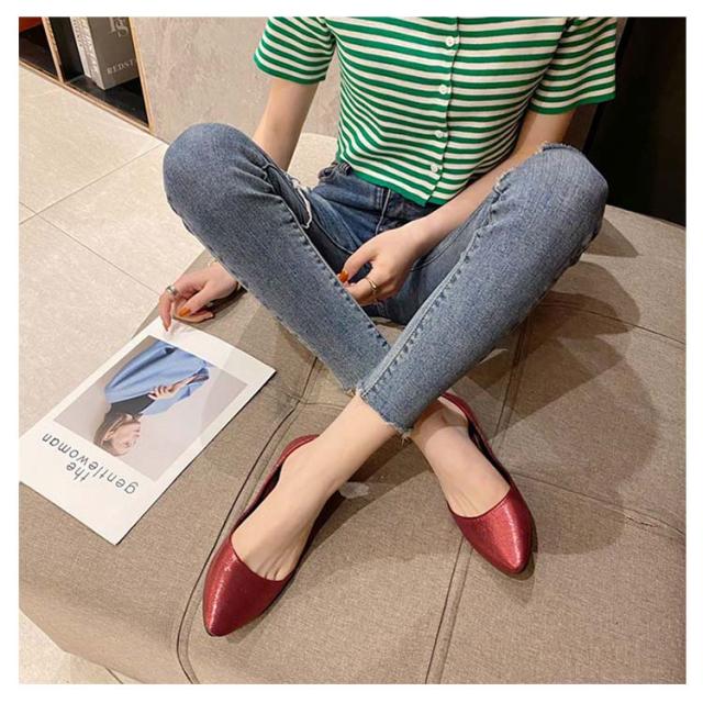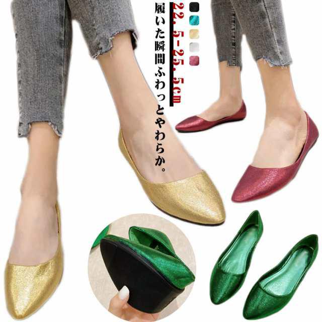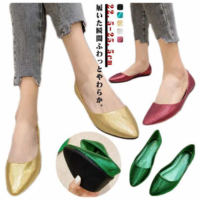 光沢 パンプス ぺたんこ 柔らか レディース ローヒール 春 夏 秋 シューズ 靴 くつ カッターシューズ ぺたんこパンプス ポインテッドトゥ フラットシューズ 歩きやすい 履きやすい 痛くない 美脚 ママ 靴 バレエシューズ 22.5-25.5cm