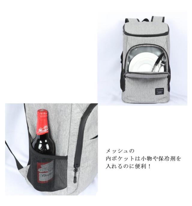 | ・大容量でたっぷり入る!リュックタイプのクーラーバッグが登場。 ・リュック型なので徒歩でも自転車でも両手が空いて楽ちん。 ・裏地は保温・保冷機能付きのアルミ蒸着。リュック内部の温度を長時間保ってくれる嬉しい仕様! ・メッシュの内ポケットは小物や保冷剤を入れるのに便利! ・普段の買い物はもちろん、レジャーやキャンプでも活躍するアイテム。 | |