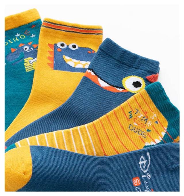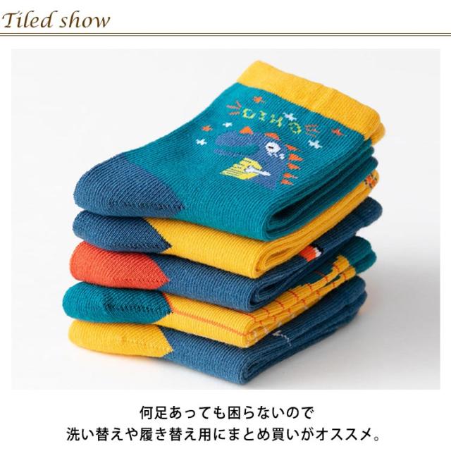 送料無料 5足組 靴下 キッズ ソックス 子供 クルーソックス 男の子 女の子 男児 女児 子ども ジュニア 恐竜 イラスト コットン 綿 通気 ショート丈 保育園 幼稚園 通園 通学 普段着 可愛い おしゃれ ギフト プレゼント