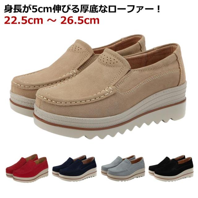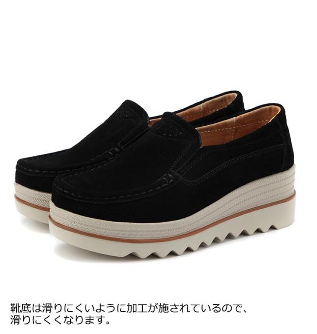 レディース スリッポン ローファー スエード スエード調 疲れない 5cm パンプス レディース 厚底シューズ 防滑 滑り止め 革靴 歩きやすい 走れる 痛くない おしゃれ シンプル 送料無料 レディースシューズ 靴 女子 黒 送料無料