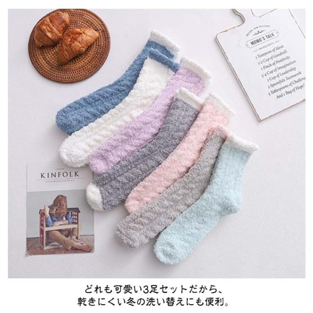 ルームソックス 3足組 もこもこ 靴下 レディース 冬 あったか 暖かい 可愛い 冷え取り靴下 厚手 ふわふわ おしゃれ 冷えとり靴下 あったか靴下 くつした 保温 防寒 プレゼント 送料無料