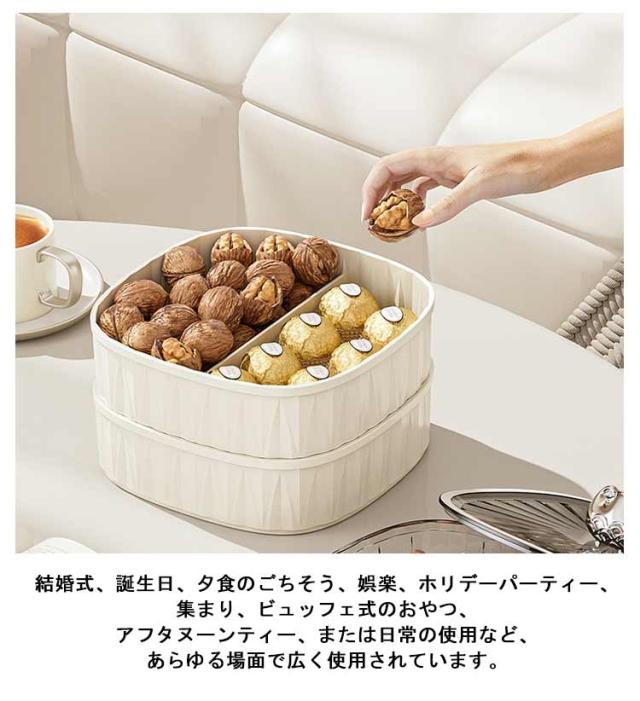 スナックボックス 収納ボックス お菓子 スナックケース フルーツトレイ 2層 蓋付き お菓子収納ケース 食品保存容器 プラスチック キャンディーボックス 仕切り 大容量 防塵 防湿 使用便利 省スペース パーティー おしゃれ インテリア 送料無料