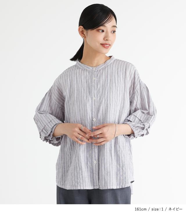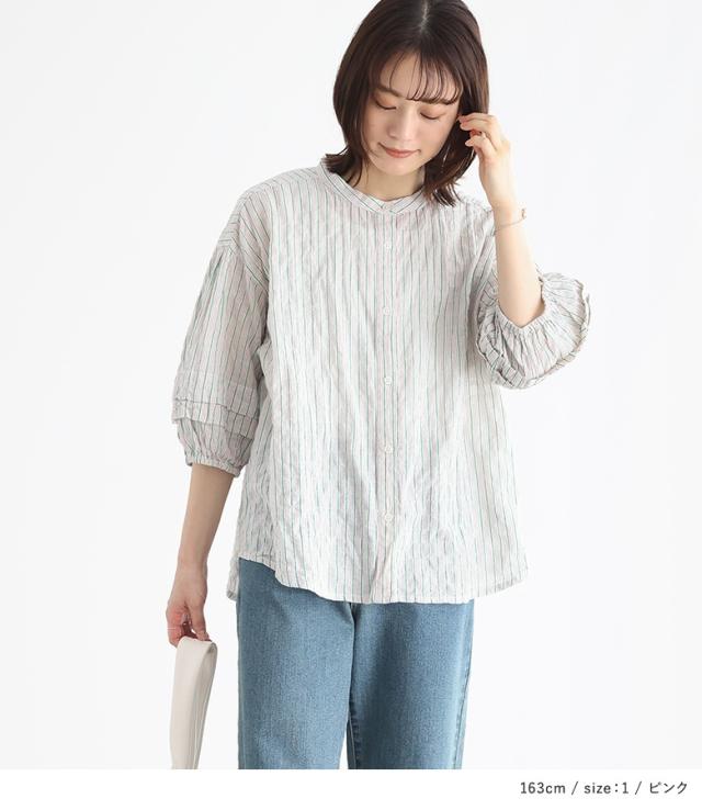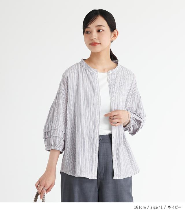 ブラウス トップス レディース 羽織 シャツ 七分袖 ストライプ柄 綿混 タック ボリューム袖 ボリュームスリーブ 配色 バンドカラー 袖口ゴム 清涼感 【TP】 シャツ・ブラウス ボタンシャツ 前開きシャツ 柄シャツ スタンドネック 大人女子 大人可愛い お洒落可愛い 大人カジュアル ベーシック ニュアンス ラフ エフォートレス オフィスカジュアル ミドル丈 シースルー シアー 透け感 レイヤード 重ね着 調節できる 調整可能 夏 カジュアル ナチュラル Sサイズ Mサイズ Lサイズ LLサイズ 3Lサイズ XLサイズ ぽっちゃり 体型カバー 大きいサイズ 10代 20代 30代 40代 50代 60代 女子会 オフィス 通勤 通学 お買い物 お出掛け 旅行 リゾート レジャー アウトドア キャンプ プール 海 おしゃれ ピンク 桃色 ネイビー 紺[ID]12tm01v