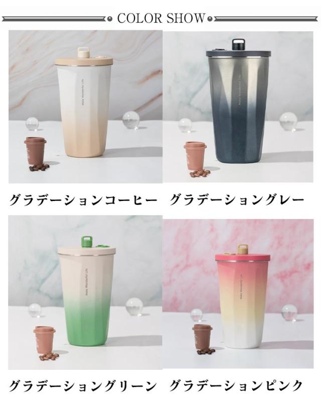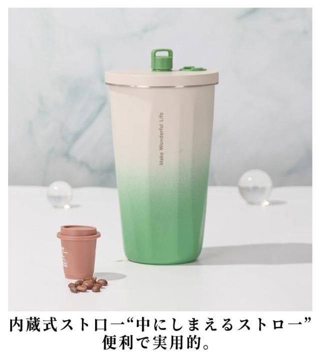 | 保温?保冷 ストロ一内蔵 500m大容量 最大6時間 真空断熱構造で熱移動を遮断。かさと冷たさを長時間キ一プ。 内蔵式スト口一 “中にしまえるストロ一” 便利で実用的。 飲まないときは中に収納できる 持ち運びや車の中でも安心 ストロ一の下部がシリコンになっているからキャツプを閉めると中に収納ができる。 | |