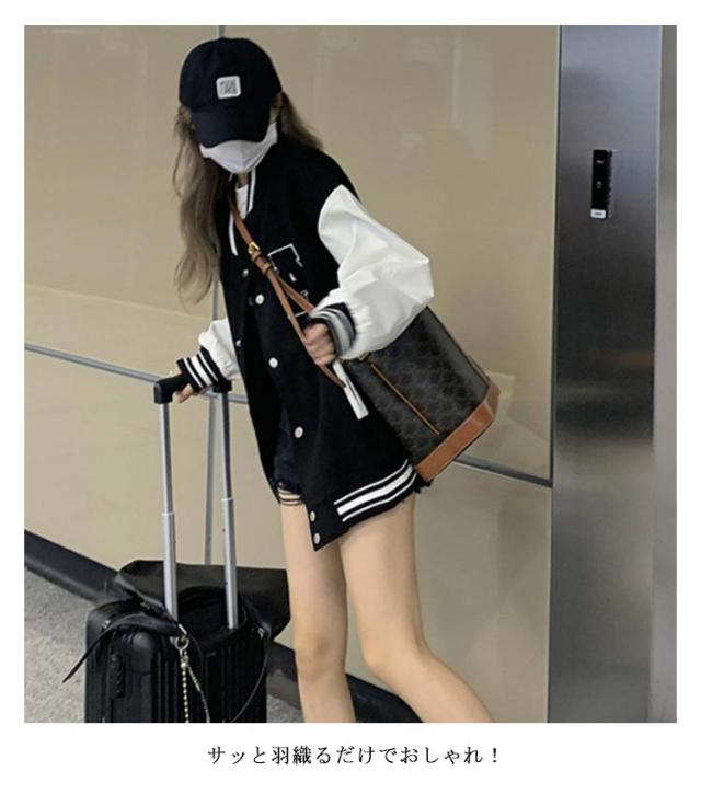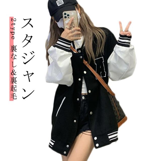 スタジャン スウェット レディース ライトアウター ブルゾン ジャケット 刺繍 ロゴ バイカラー ゆったり スタジアムジャンパー 韓国ファッション スカジャン ジャンパー ブルゾン オーバーサイズ 長袖 フリーサイズ 春