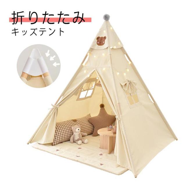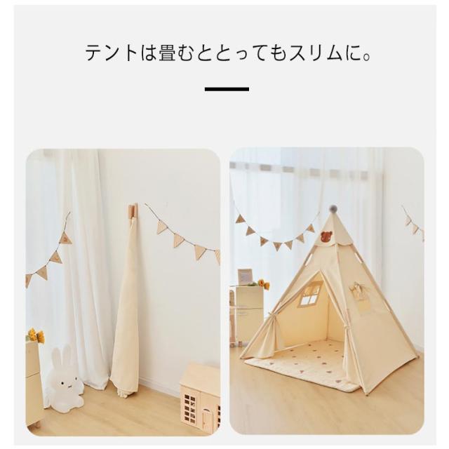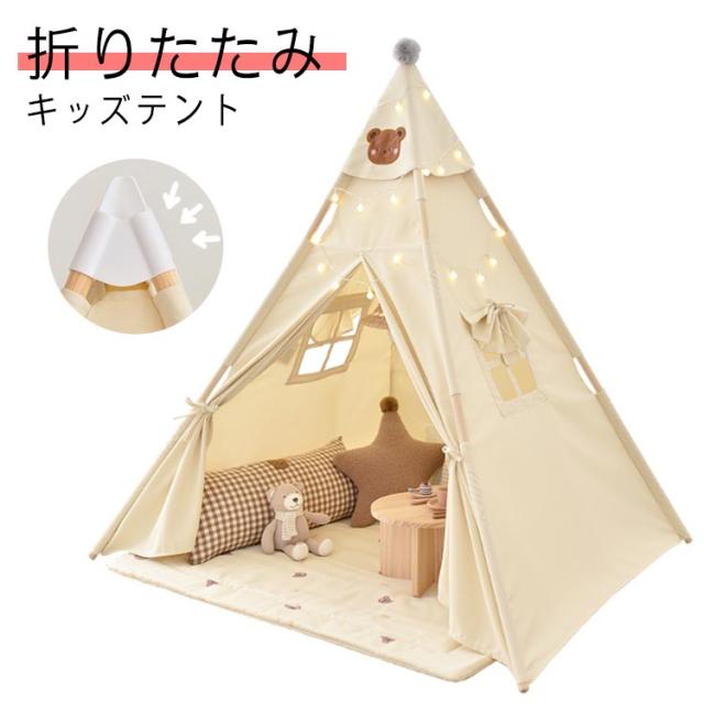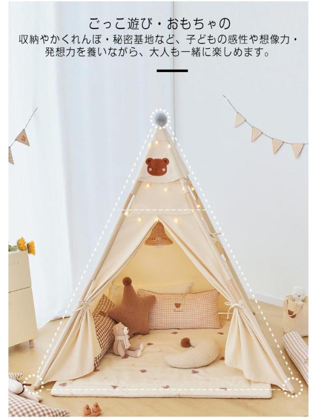 キッズ テント 女の子 男の子 プレイテント プレゼント 折りたたみ キッズハウス 窓付き 子供用テント ティピー おしゃれ テントハウス 屋内 こどもテント おもちゃ ボールハウス くま 熊 秘密基地 ベビー プレイルーム 洗える おしゃれ かわいい 北欧 誕生日 送料無料
