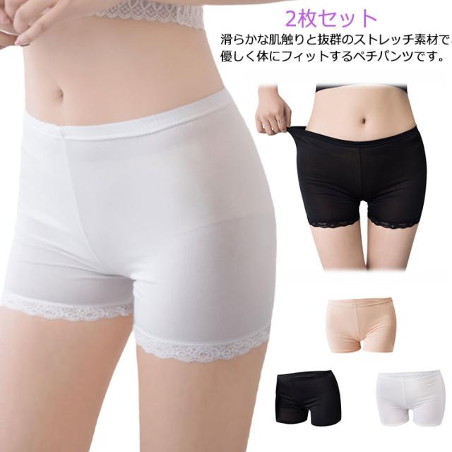 2枚セット ペチパンツ ペチコート インナーパンツ ペチ パンツ ドレス ワンピース 透け防止 インナー 透けない ショートパンツ ショート丈 1分丈 ストレッチ 伸縮 レディース 薄手 涼しい 接触冷感 夏用 快適 通気性 ブラック 肌色 ホワイト