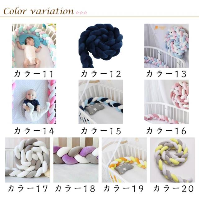 ベビーベッド ガード 4m/3.5m/3m 寝返り防止 クッション 3本編み 赤ちゃん 寝返り防止クッション サイドガード 曲げる 寝室 プレイルーム 保育園 飾り カラフル