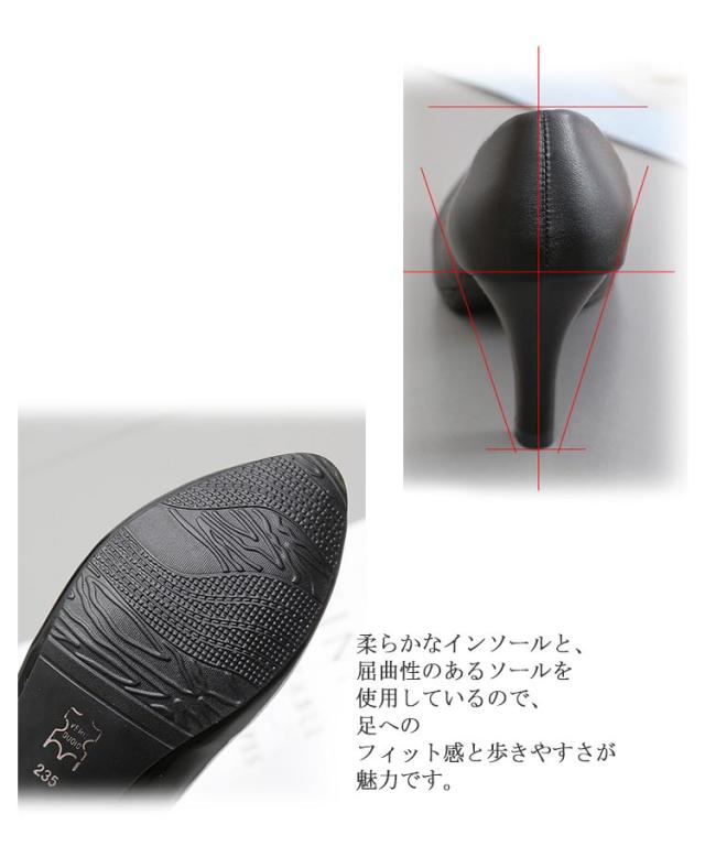 | ヒールの高さにより様々になっておりますので、理想のパンプスが見つかること間違いなし。 通勤やリクルートから冠婚葬祭などのフォーマルシーンまで使えるパンプス。 柔らかなインソールと、屈曲性のあるソールを使用しているので、足へのフィット感と歩きやすさが魅力です。 | |