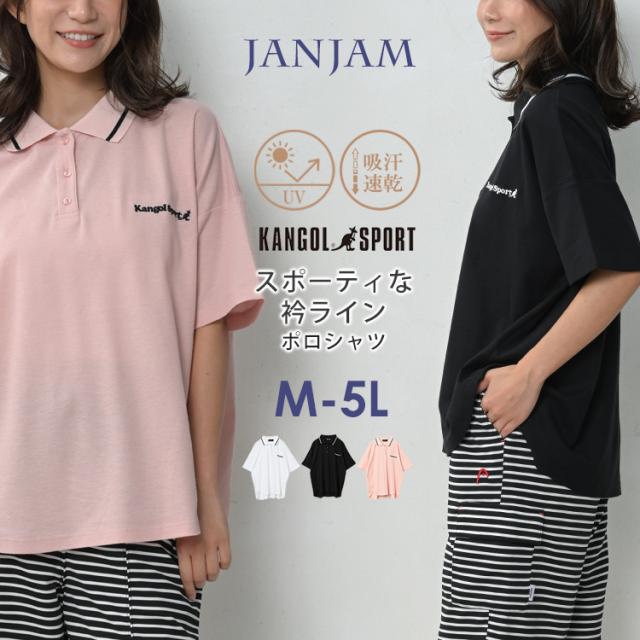 大きいサイズ レディース 衿ラインポロシャツ 半袖 メール便対応 UVカット 吸汗速乾 トップス KANGOL M/LL/3L/4L/5L ゆったりサイズ ぽっちゃり女子 プラスサイズ