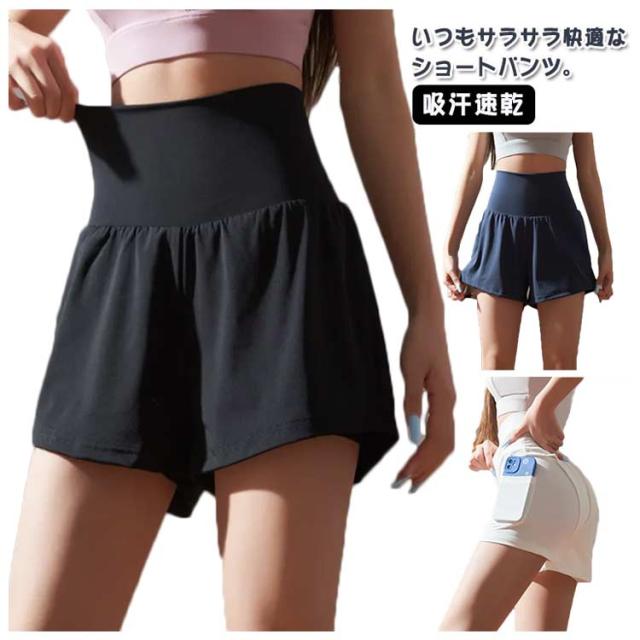 スポーツウェア フィットネスパンツ ヨガパンツ ショートパンツ レディース 短パン ポケット付き 吸汗速乾 ジム ルームウェア ランニング ハイウエスト トレーニングウェア ジョギングウェア 動きやすい シンプル 無地 ブラック グレー ホワイト ダークブルー 送料無料