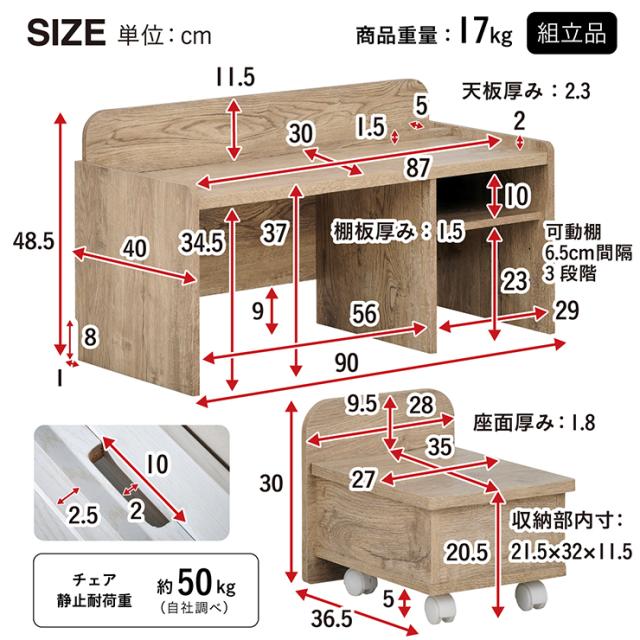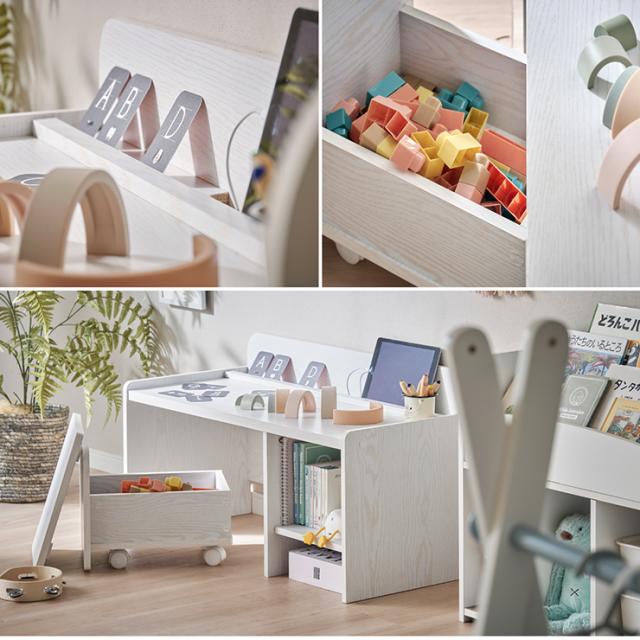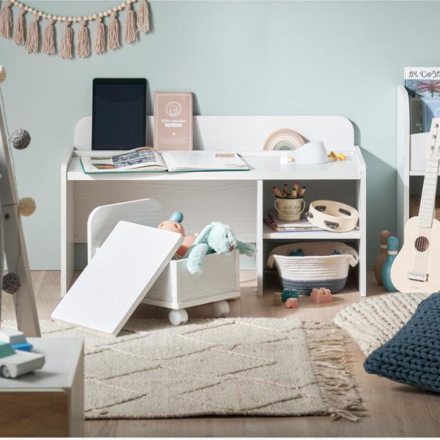 キッズデスクセット キッズデスク チェア 2点セット 学習机 勉強机 キッズチェア 子供椅子 子ども用椅子 子ども 机 幼児 椅子 おもちゃ収納 おもちゃ箱 おしゃれ キャスター付き 木製 Paley(ペイリー) 幅90cm 2色対応
