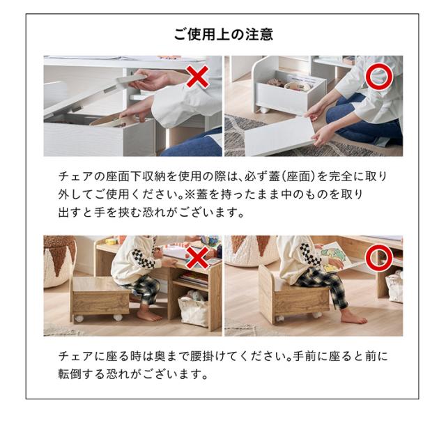 ※座面下の収納をご使用する際は蓋は必ず取り外してご使用ください。(蓋を持ったまま中のものを取り出すと手を挟みやすい)