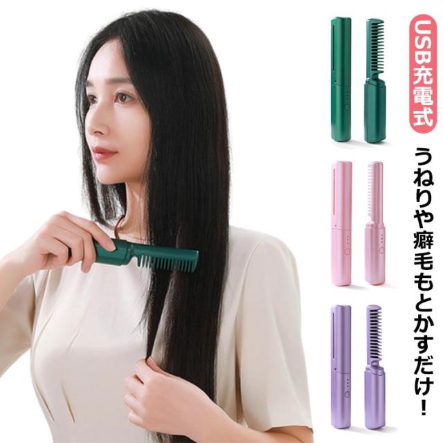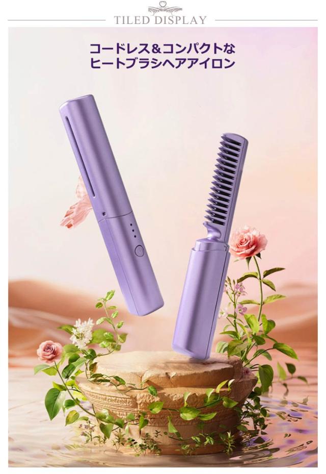 ヘアアイロン ミニ ヒートブラシ くし型 コードレス USB充電式 両用アイロン ストレートアイロン ヘアーアイロン ストレートヘア 内巻き 外巻きヘア ボリューム出し ストレートブラシ カール コンパクト 温度調節 軽量 持ち運び 旅行