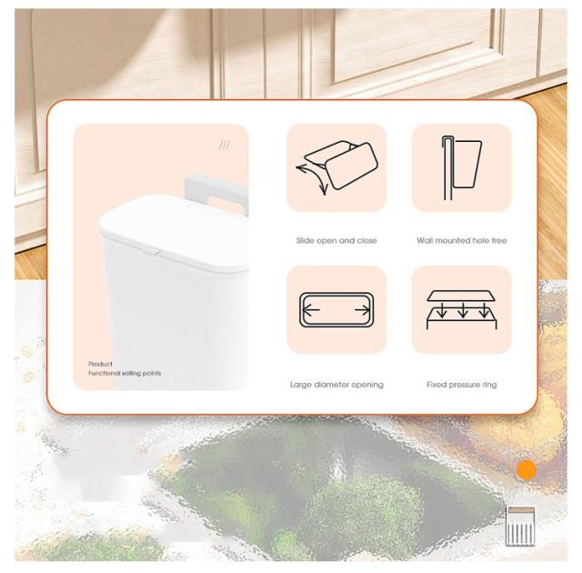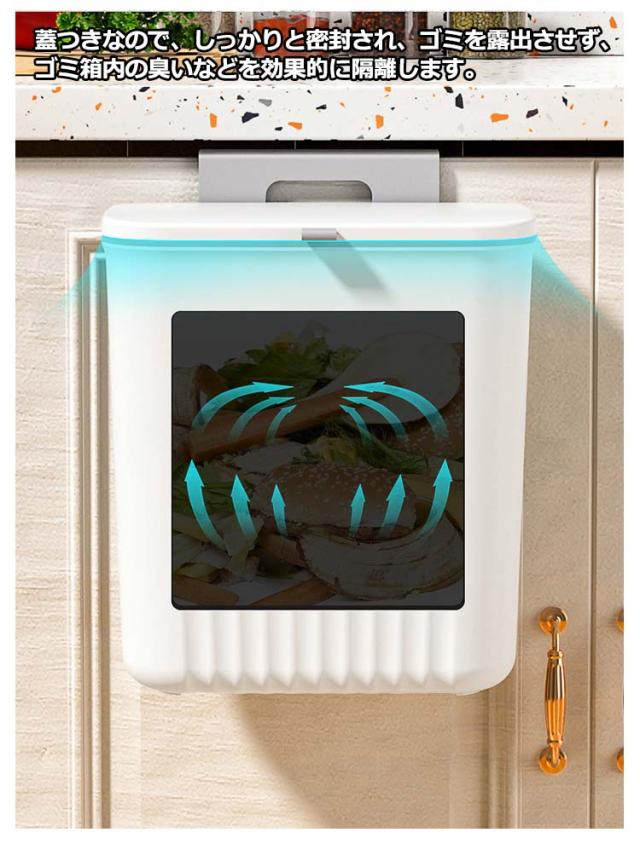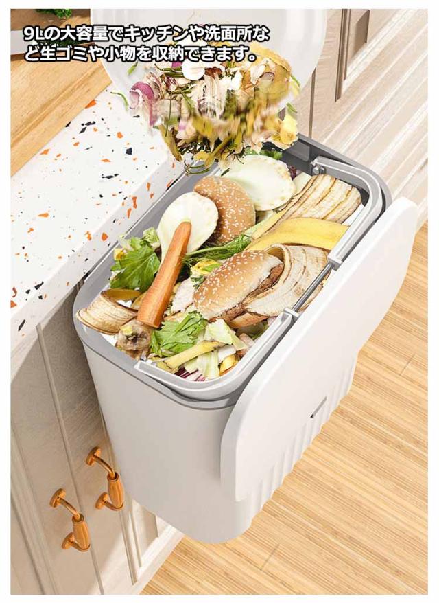 ゴミ箱 蓋付き 壁掛け キッチン 9L 広口 大口径 大容量 北欧風 ぶら下げ式 スリム 生ごみ シンプル ダストボックス スライダー式 リビング バスルーム 洗面所 ベッドルーム オフィス トイレ用 送料無料