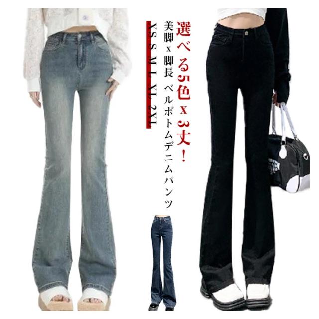 ベルボトム デニムパンツ レディース ブーツカット ジーンズ 9分丈 10分丈 12分丈 ストレッチ ハイウエスト フレアパンツ 無地 ボトムス ジーパン 美脚 脚長 きれいめ おしゃれ カジュアル 春夏 秋冬韓国ファッション ボトムス 送料無料