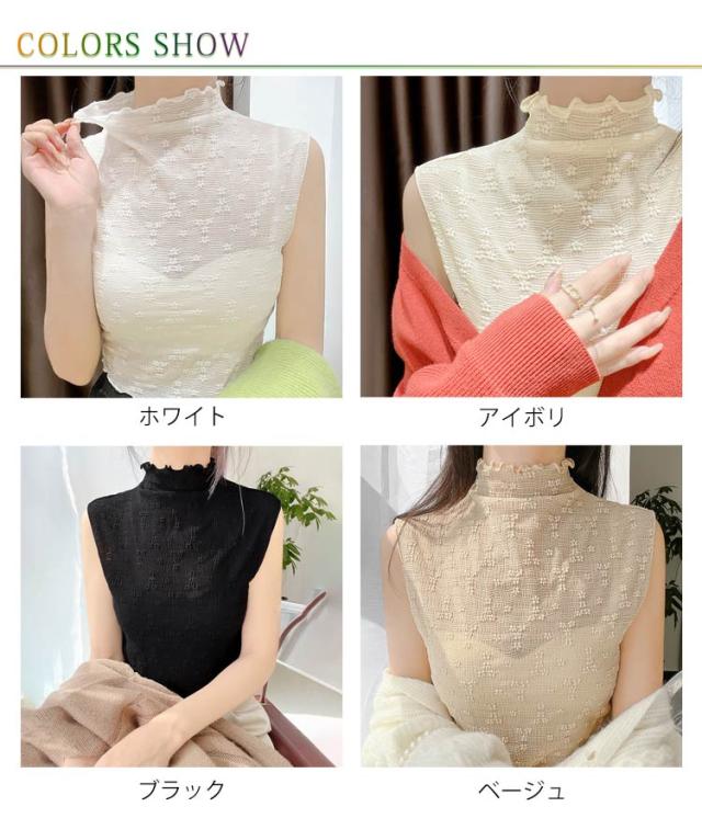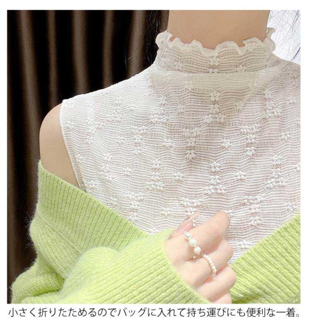 【送料無料】 付け襟 ハイネック シースルー 付け衿 カットソー 花柄 総レース ハイネック つけ襟 フリル メロウネック シースルー カットソー 重ね着用 ノースリーブ レイヤード イ