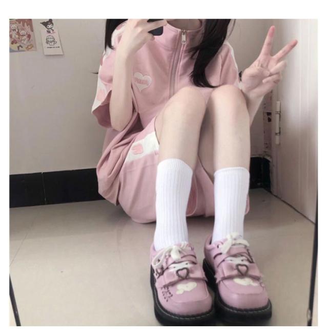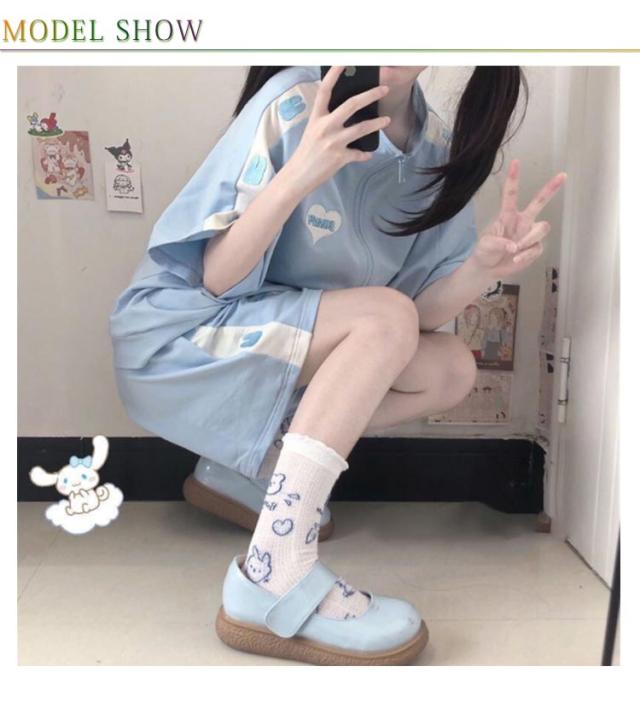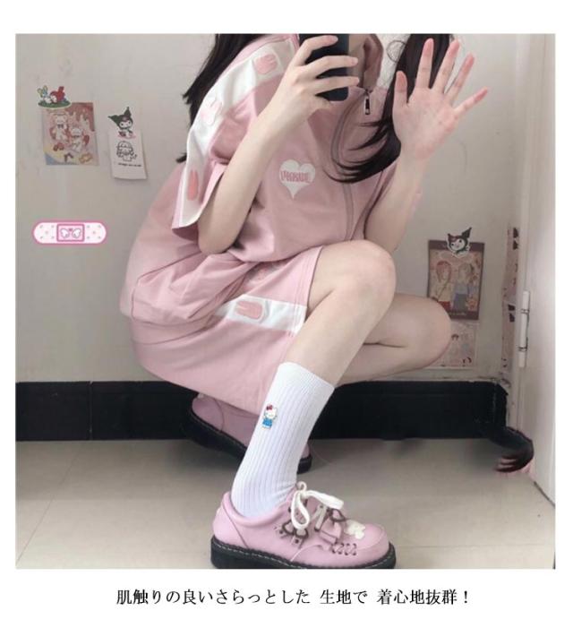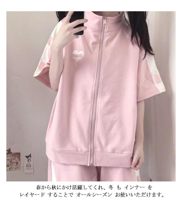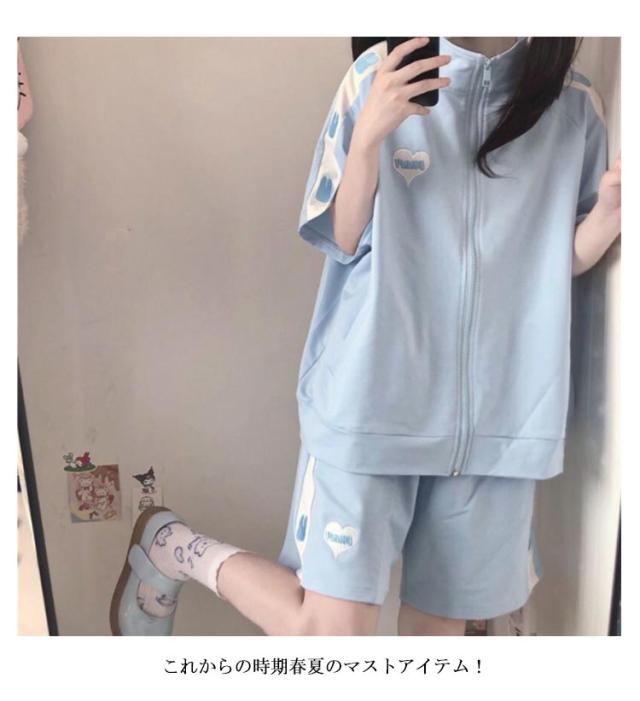 2点セット トップス かわいい ジャージ 春夏 通学 半袖 ゆったり 高校生 服 前開き レディース セットアップ 女子 パーカー ショートパンツ 学生 薄手 地雷系 服 ジャージ レディース 上下セット